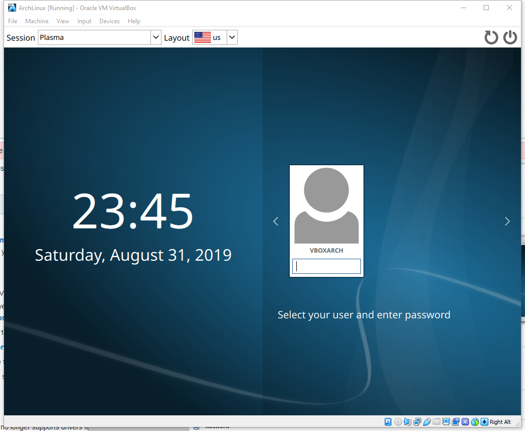 同样是上网搜了一下,发现如果按下 Ctrl + Atl + F2 是可以进入命令行模式的,随便执行了几个命令,发现系统工作正常。用 journalctl 看一下系统日志,发现在最后一段里经常出现高亮的几行里面,都有 drm 这个关键词,再次搜索,发现是和显卡相关的。因为是在虚拟机里,所以就去 VirtualBox 里康康有啥可能会导致问题的选项。
